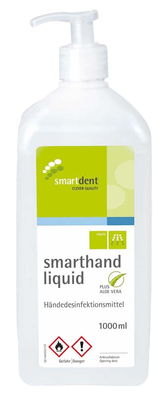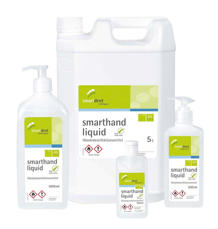 Das smarthand liquid ist eine alkoholhaltige, antiseptische Lösung für die hygienische und chirurgische Händedesinfektion. Sie wirkt bakterizid, levurozid, tuberkulozid und ist begrenzt viruzid. smarthand liquid hygienische Desinfektion (EN 1500), durch verreiben der Lösung (3 ml) mit der erforderlichen Einwirkzeit von 60 Sekunden. Außerdem erfüllt das smarthand liquid die Anforderungen einer chirurgischen Desinfektion (EN 12791) durch Verreiben von 3 ml Liquid mit der erforderlichen Einwirkzeit von 1,5 Minuten. Vorgang wiederholen. Biozidprodukte vorsichtig verwenden. Vor Gebrauch stets Etikett und Produktinformation lesen.