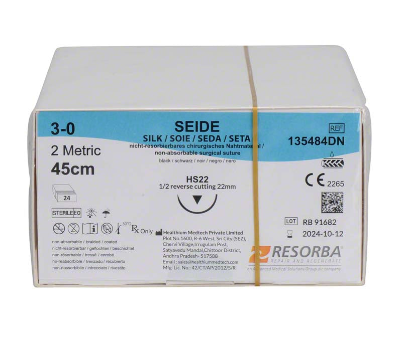 RESORBA Seide, schwarz, 12 Stk, 45 cm, USP 2/0, HS22