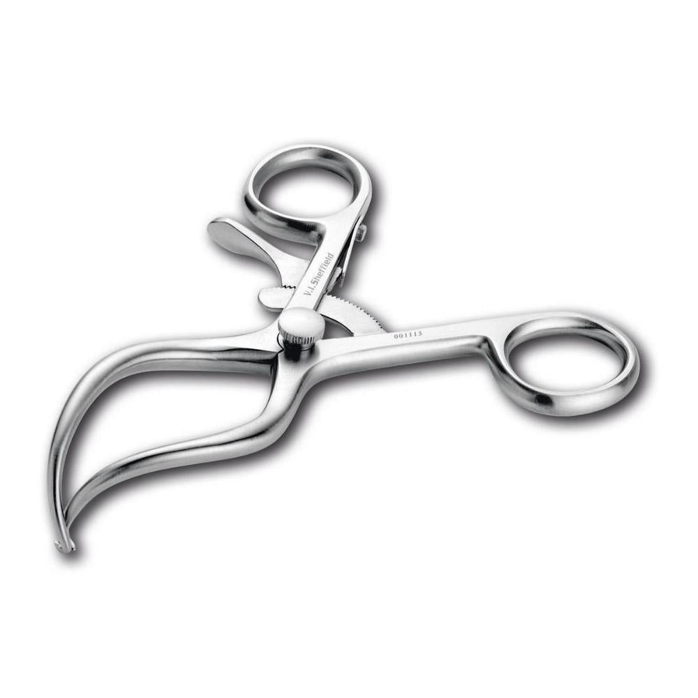 Der kleine Gelenkspreizer kann auch zum Offenhalten von kleinen Wunden in der Haut oder im Muskelgewebe verwendet werden. Die Gesamtlänge beträgt 130 mm.