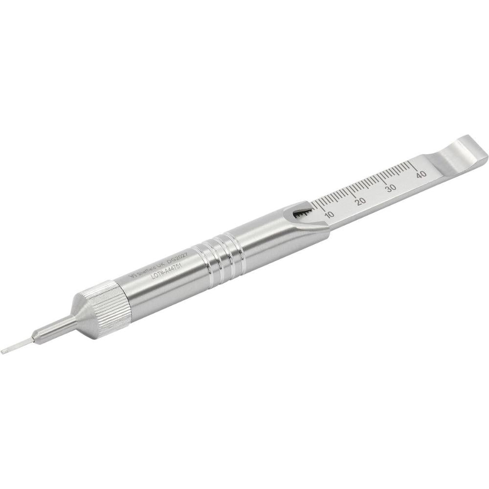 Das präzise Messen der Tiefe der Bohrung ist notwendig, um die richtige Länge der Schraube zu ermitteln. VI hat eine Reihe von Tiefenlehren für verschiedene Schraubengrößen im Angebot. Die Tiefe der Bohrung kann an der Lehre abgemessen werden und kann für selbstschneidende und nicht schneidende Schraubensysteme verwendet werden.