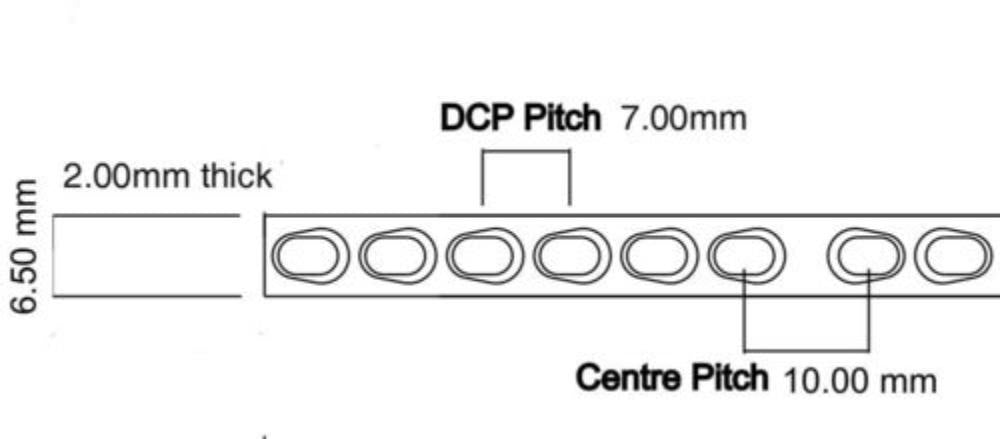 Die 2,4 mm DCPs liegen im Bezug auf Gewicht, Lochgröße und Lochabstand zwischen den 2,0 und 2,7 mm DCPs. Die 2,0 und 2,7 mm Kortikalisschrauben können mit den 2,4 mm DCPs verwendet werden. Die 2,4 mm DCPs haben eine matte Oberfläche, damit Sie diese von den 2,0 und 2,7 mm Platten leichter unterscheiden können. Verwenden Sie die Bohrlehre (load/neutral, LNDG24) und 2,4 mm Kortikalisschrauben, um Kompression auszulösen. In der Edelstahlbox (BX24CS) können Sie alle 2,4 mm Instrumente aufbewahren.